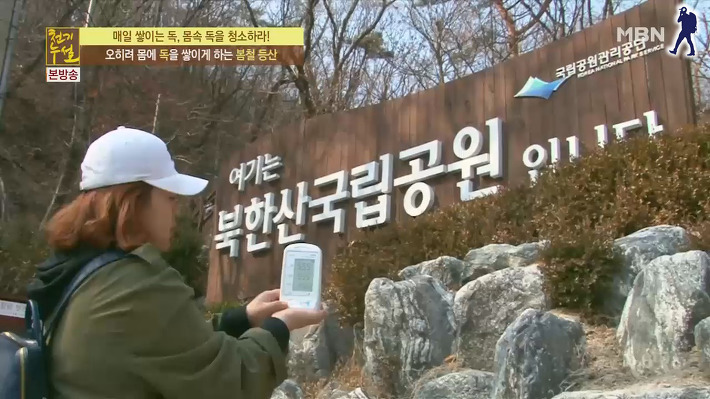 하루는 평소와 똑같이 등산을 하러 북한산 입구에 도착을 했는데 어느 여자분께서 사진처럼 측정기 같은 것을 들고 포즈를 취하고 있으시더라고요.