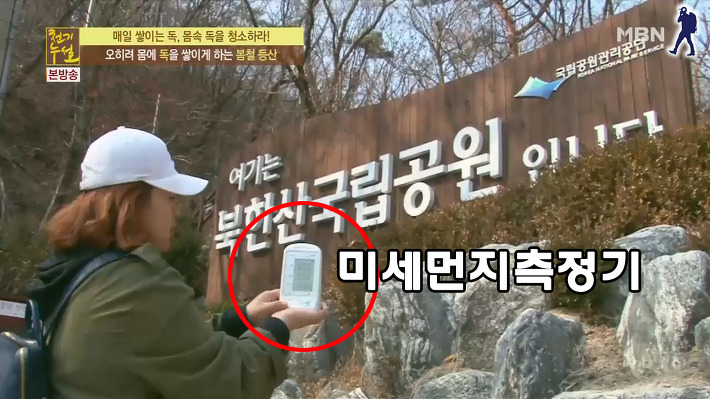 "공기가 좋은 북한산에서 무슨 미세먼지 측정기를 들고 있나?" 했는데 이 날, 미세먼지가 좀 심한 날이었는데요. 미세먼지가 심한 날에는 나무가 많은 산의 공기는 어떤 지 직접 미세먼지 측정기로 확인을 하러 왔다고 합니다.