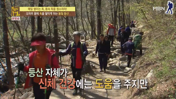등산은 심폐기능 향상과 땀으로 노폐물을 배출하여 건강에 도움을 준다고 알려져 있습니다.